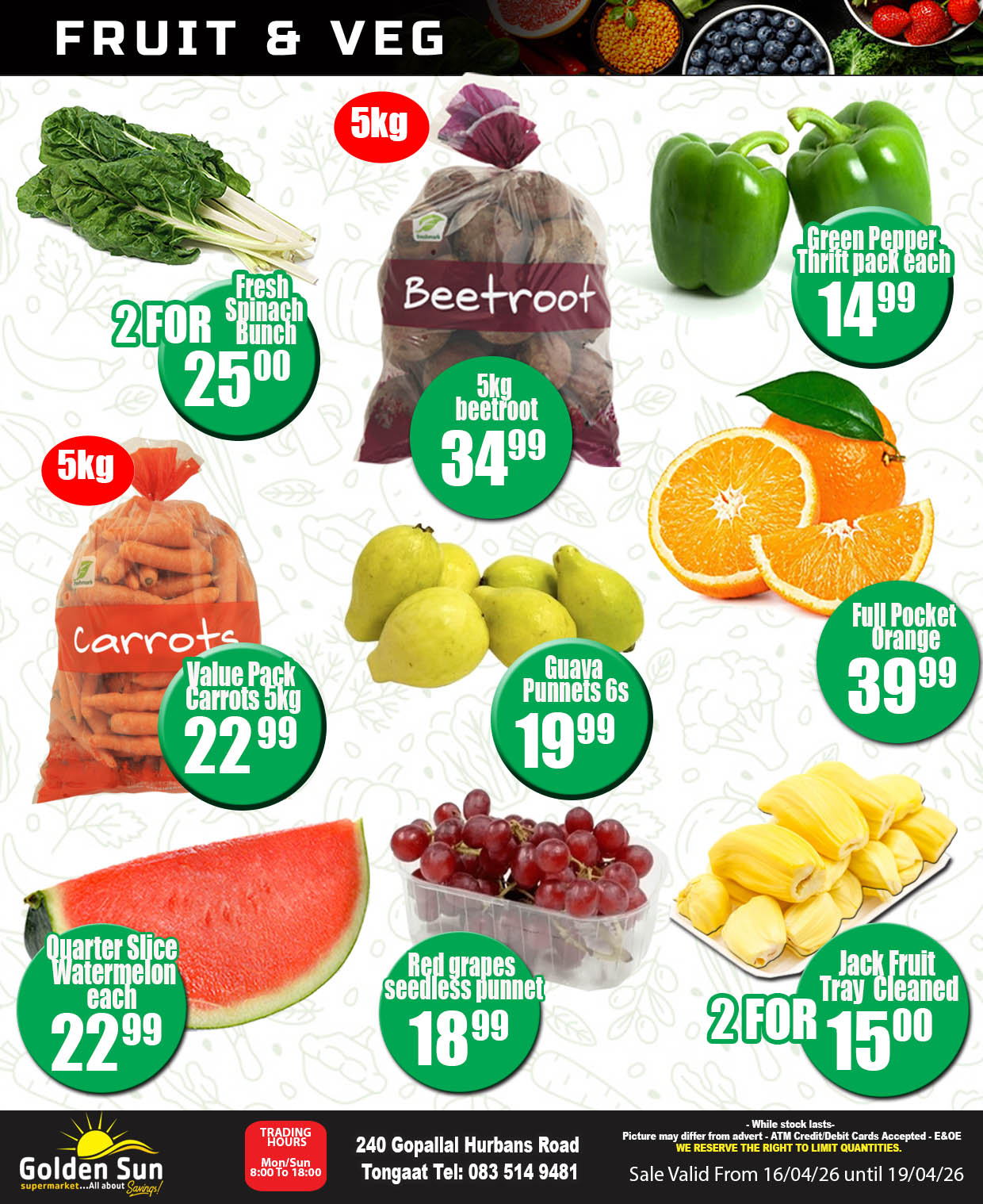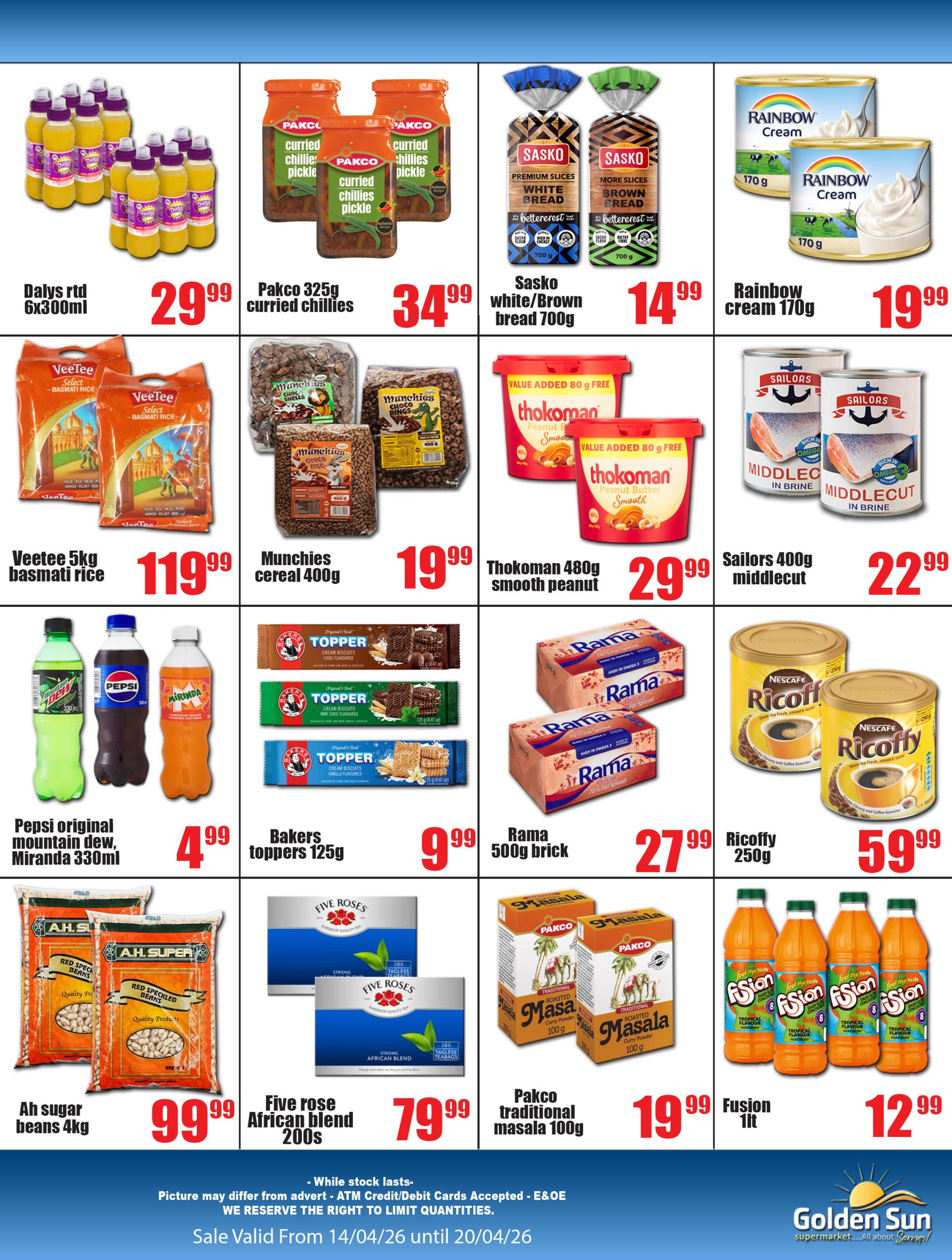 APRIL SAVINGS!!! VALID 14/04/2026 UNTIL 20/04/2026+ 4 DAY PRICE CUT FROM 16/04/2026 UNTIL 19/04/2026